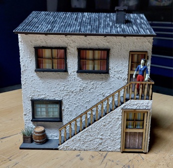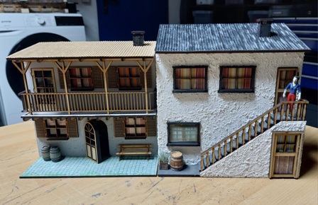 Bau eines kleinen Presseturms 01 Dafür benötigte ich Balsaholz und verschiedene kleine Holzleisten und meine allerwerteste Heißklebepistole. Ein Cuttermesser und einen Bleistift. Die Werbung habe ich auf dem PC erstellt und ausgedruckt.